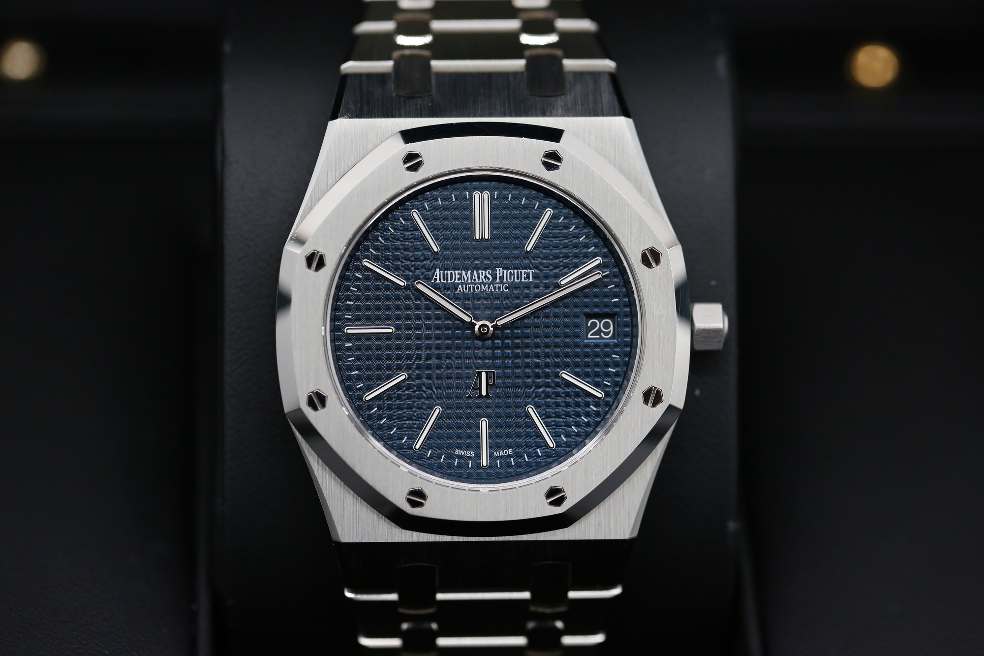 HERE WE HAVE THE AUDEMARS PIGUET ROYAL OAK- BLUE