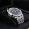 THIS WATCH ALSO BOASTS WHITE GOLD APPLIED HOUR MARKERS, ROYAL OAK HANDS WITH LUMINESCENT COATING AND A DATE WINDOW AT 3 O’CLOCK.