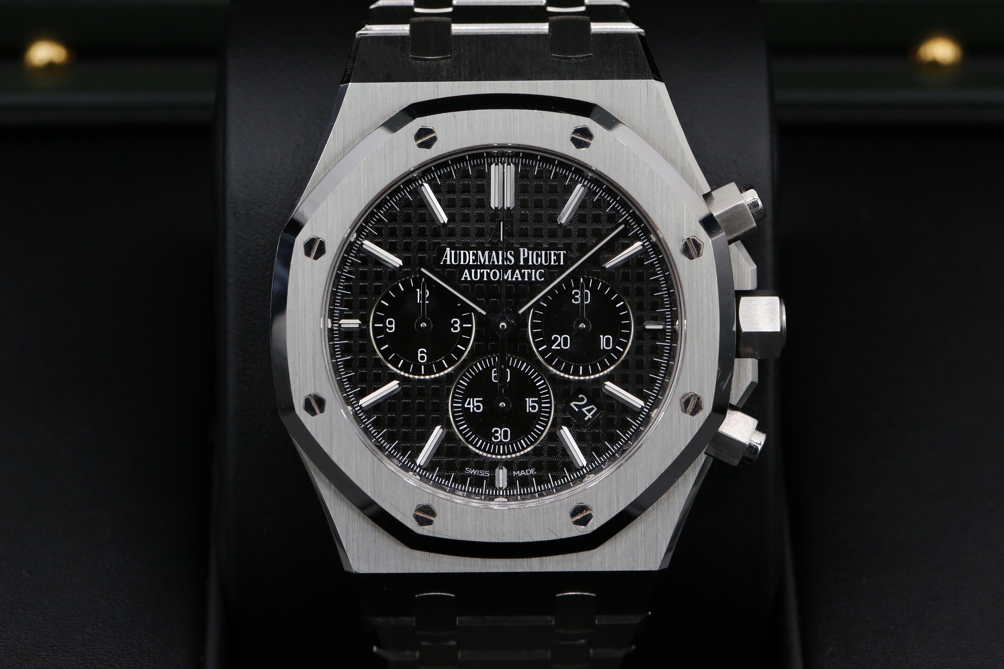 Welcome to kettle club, here we have the stunning audemars piguet royal oak chronograph with black dial.