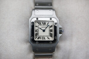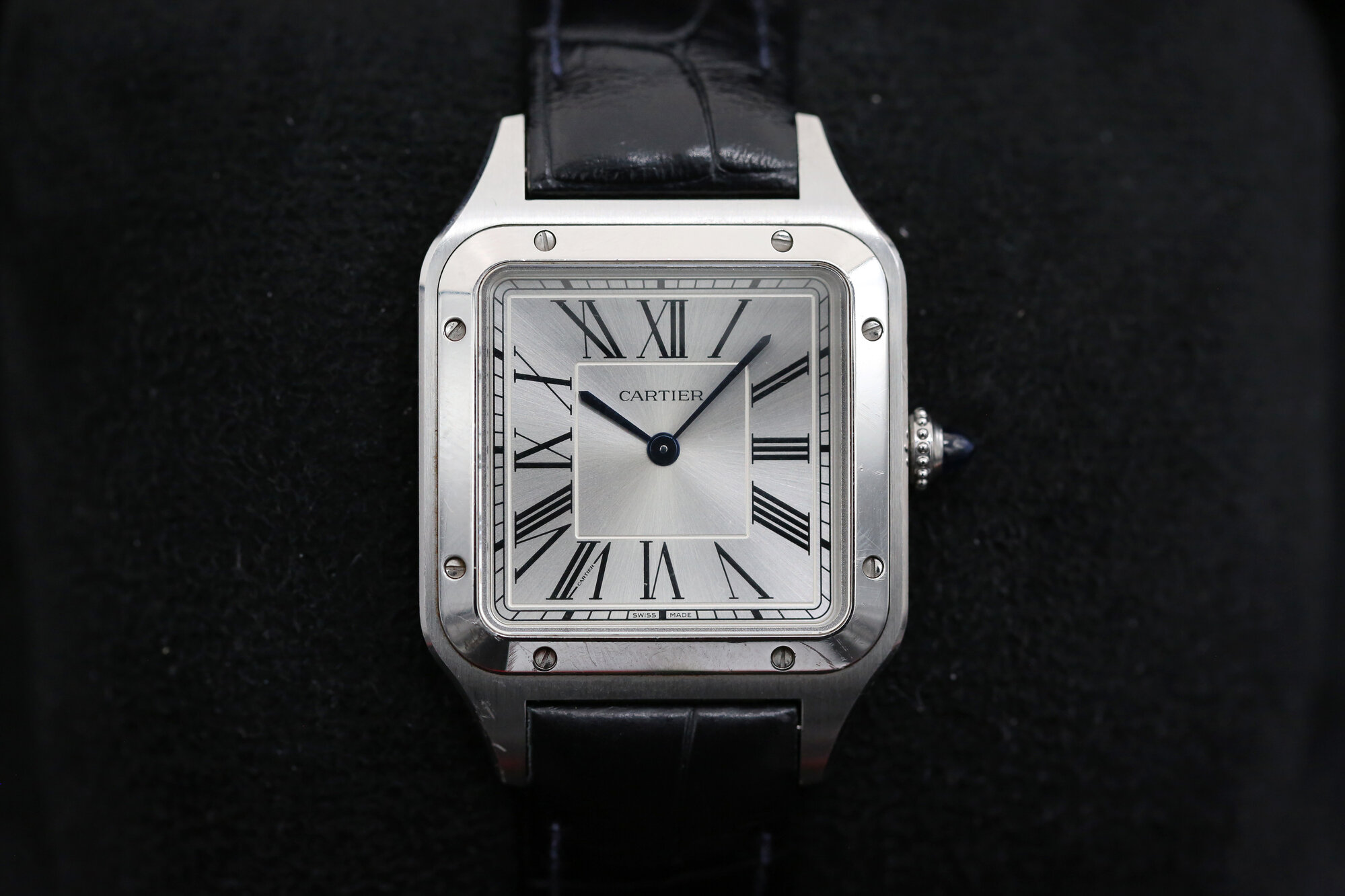 Here we have the Cartier Santos Dumont– Silver Sunray