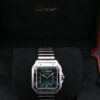 Here we have the Santos De Cartier Watch – Green Roman This is a large model that has a steel bracelet with SmartLink adjustment system, 7-sided crown with synthetic faceted blue spinel, a beautiful graduated green dial, date window at 6 o’clock and steel sword-shaped hands. The Santos also offers... Read More