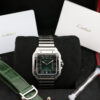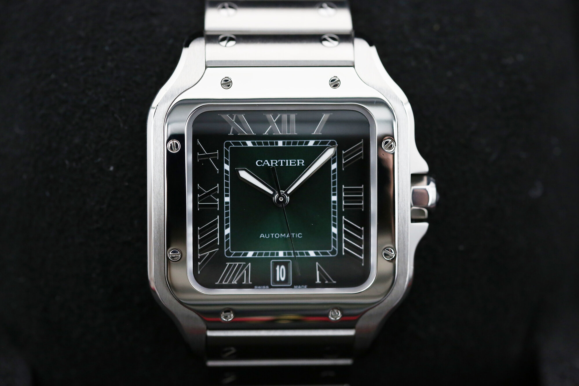 The Santos also offers the option of a second strap in green alligator skin with interchangeable steel folding buckle.
