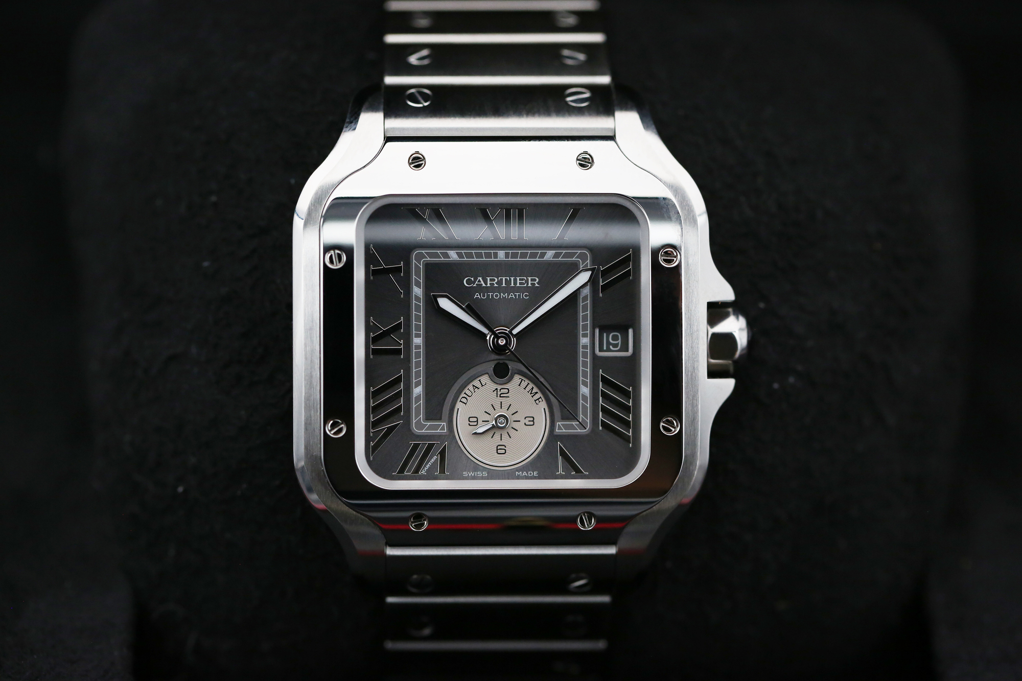 Here we have the Santos De Cartier Dual Time – Grey Sunray