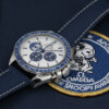 This 50th anniversary timepiece pays tribute to the “Silver Snoopy Award” that OMEGA received from NASA astronauts in 1970, in recognition of the brand’s contributions to space exploration, including the Apollo 13 mission.