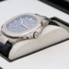 THIS IS A 40MM MODEL THAT HAS A WHITE GOLD ROUNDED OCTAGONAL CASE, SAPPHIRE CRYSTAL GLASS AND A BEAUTIFUL GREY EMBOSSED DIAL.