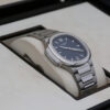 This version of the Nautilus features a blue opaline “wave” pattern dial, white gold applied numerals/hour markers with white luminescent coating and white gold alpha-style hands with white luminescent coating.