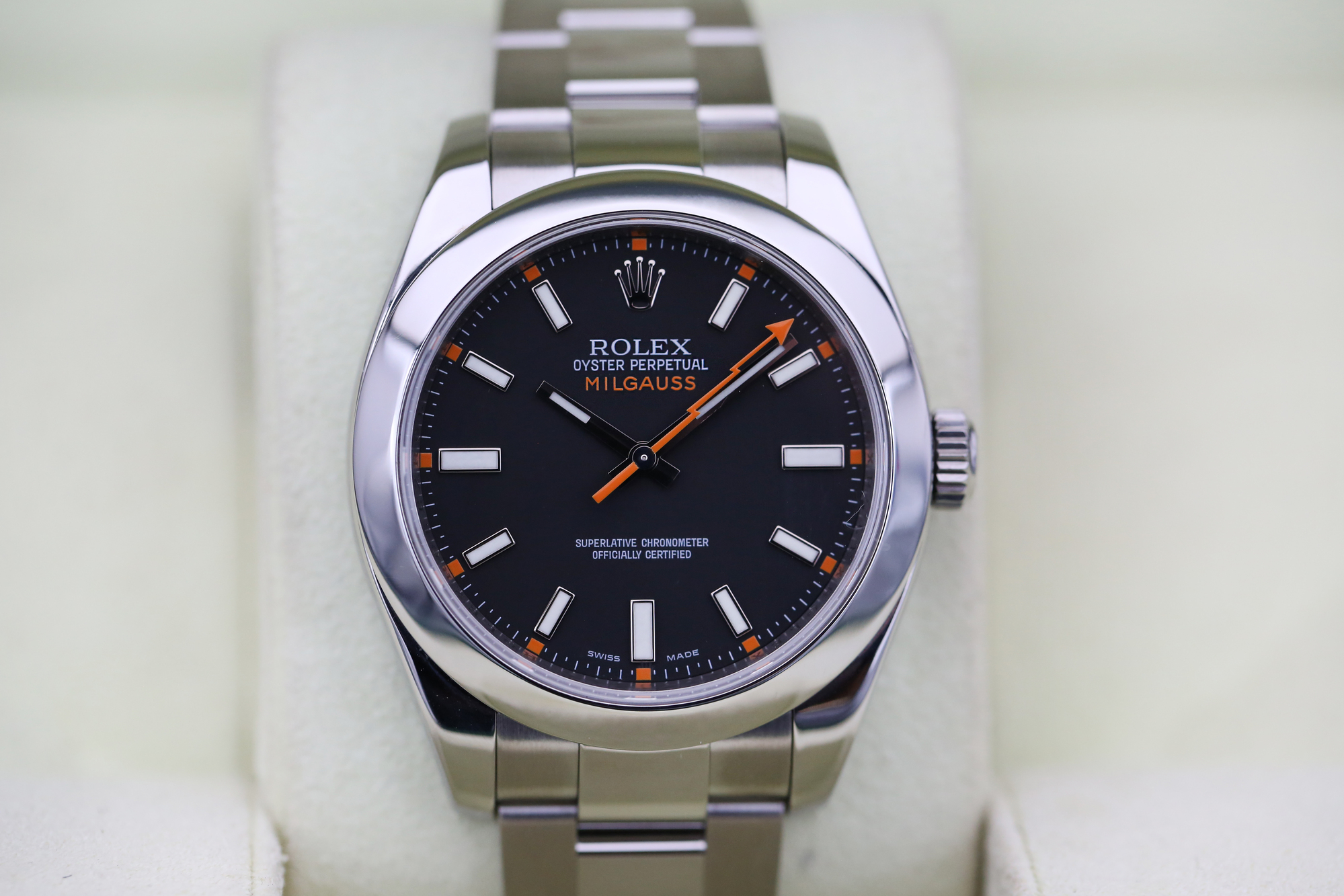 The watch name Milgauss was created from the Latin word “mille” meaning a thousand and “guass” a unit of measurement for magnetic induction and was originally created for scientists and power station workers.