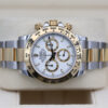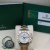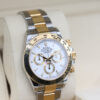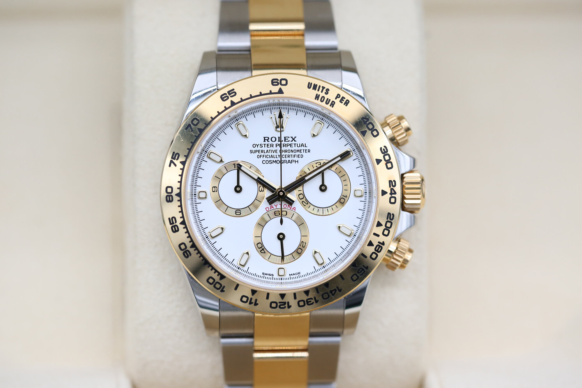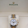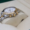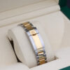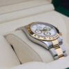 The watch is a fantastic combination of 18ct gold and oystersteel that features a stylish white dial and gold detail on both the hour markers and sub dials.