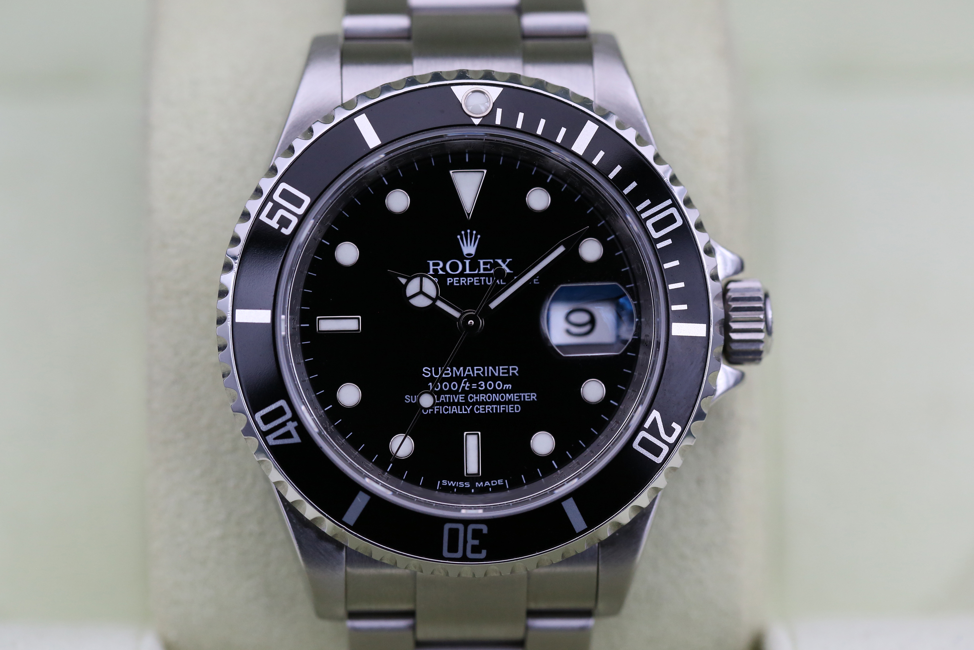 THIS IS A 40MM MODEL AND COMES ON THE FAMOUS OYSTER BRACELET, HAS A SLEEK BLACK DIAL AND A PRE-CERAMIC BEZEL.