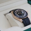 The watch boasts 18ct rose gold casing and a cerachrom bezel insert in high-tech ceramic.
