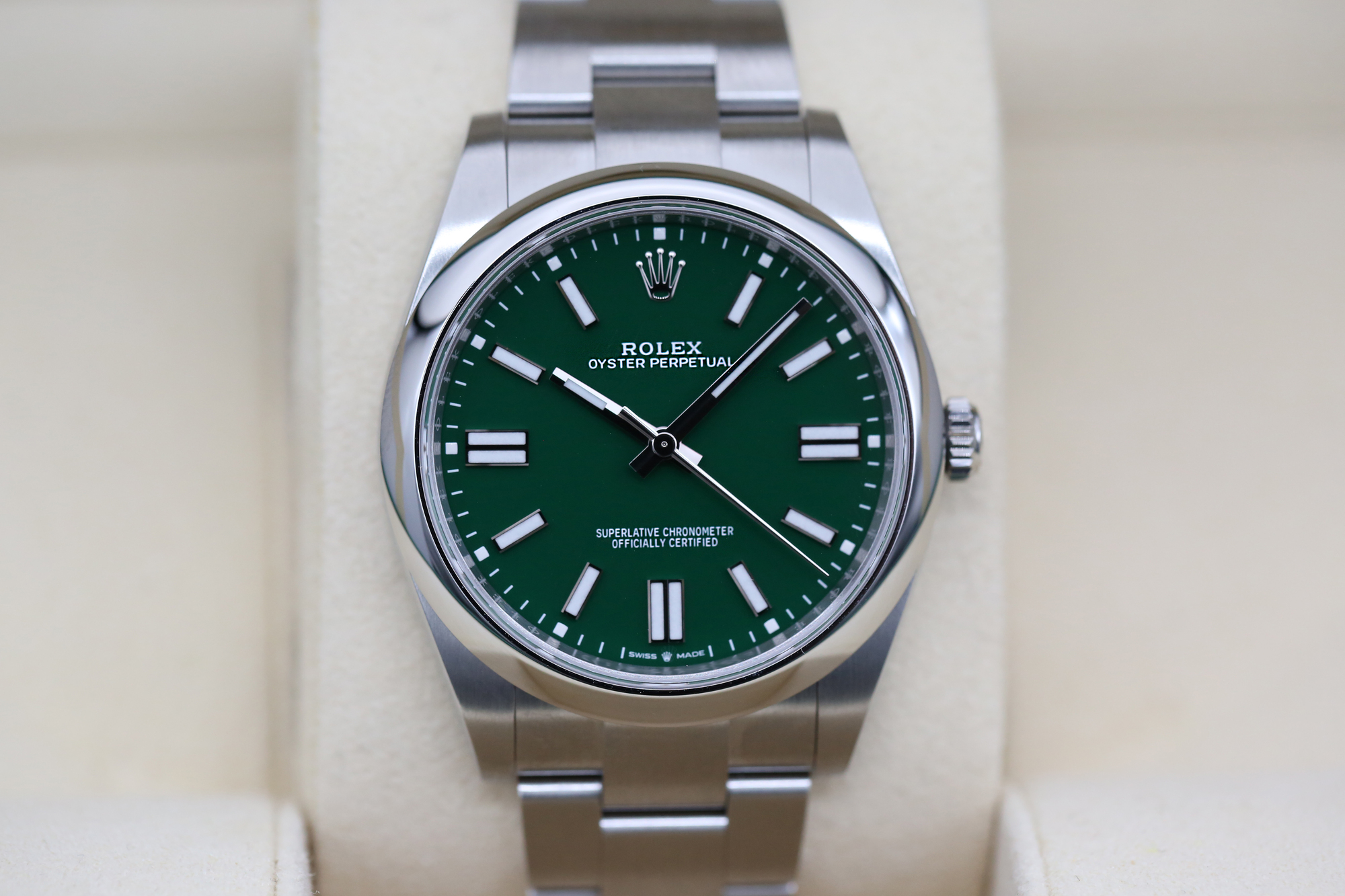 HERE WE HAVE THE ROLEX OYSTER PERPETUAL– GREEN