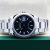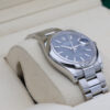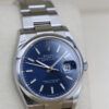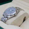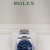THE WATCH FEATURES A STUNNING BLUE DIAL, A DATE WINDOW AT 3 O’CLOCK AND A SMOOTH OYSTERSTEEL BEZEL.
