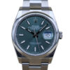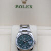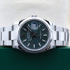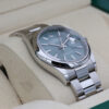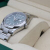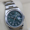 THE WATCH FEATURES A STUNNING MINT GREEN DIAL, A DATE WINDOW AT 3 O’CLOCK AND A SMOOTH OYSTERSTEEL BEZEL.