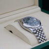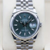 The watch features a stunning mint green dial, a date window at 3 o’clock and a smooth oystersteel bezel.
