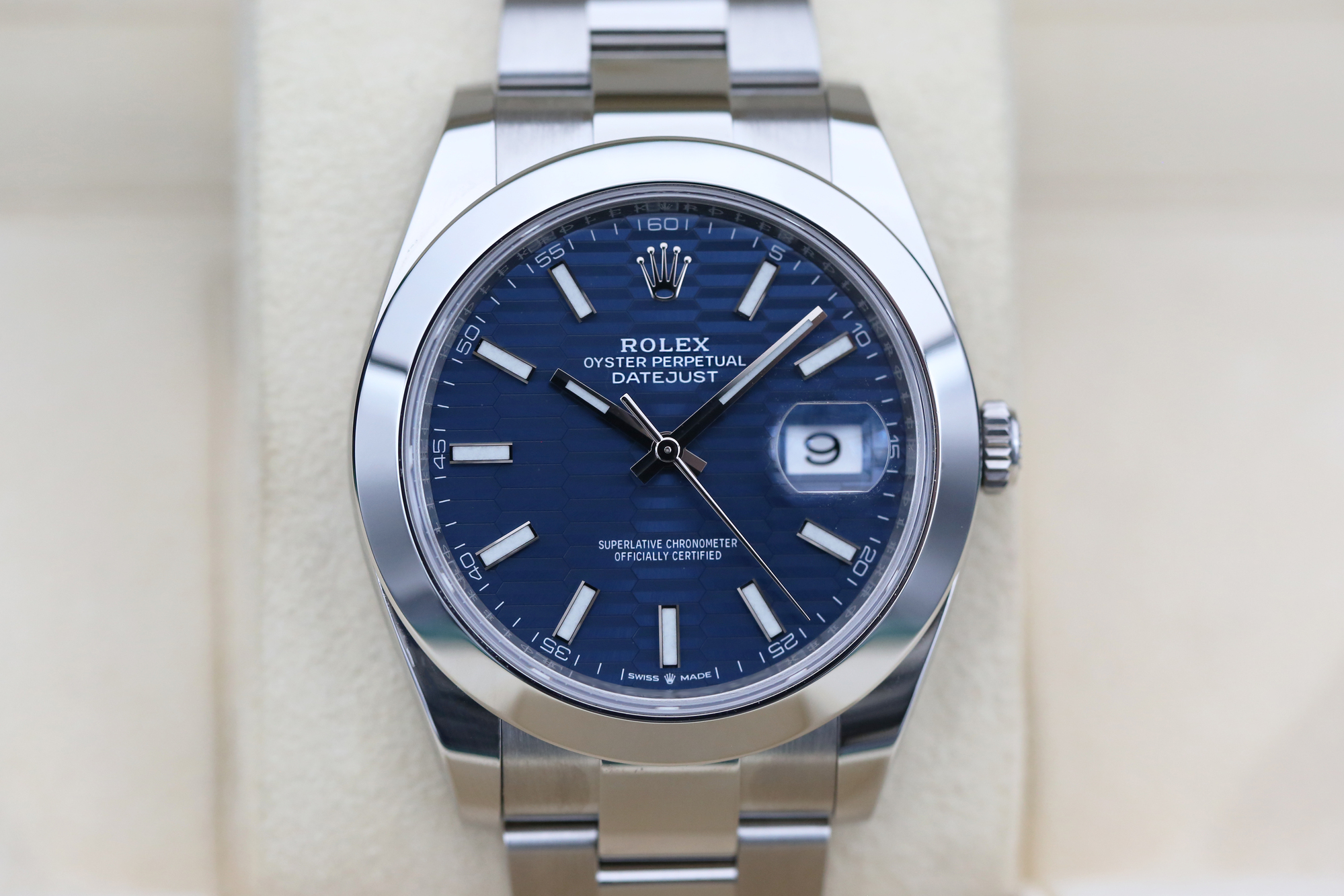 HERE WE HAVE THE ROLEX DATEJUST– BLUE MOTIF