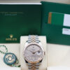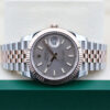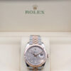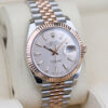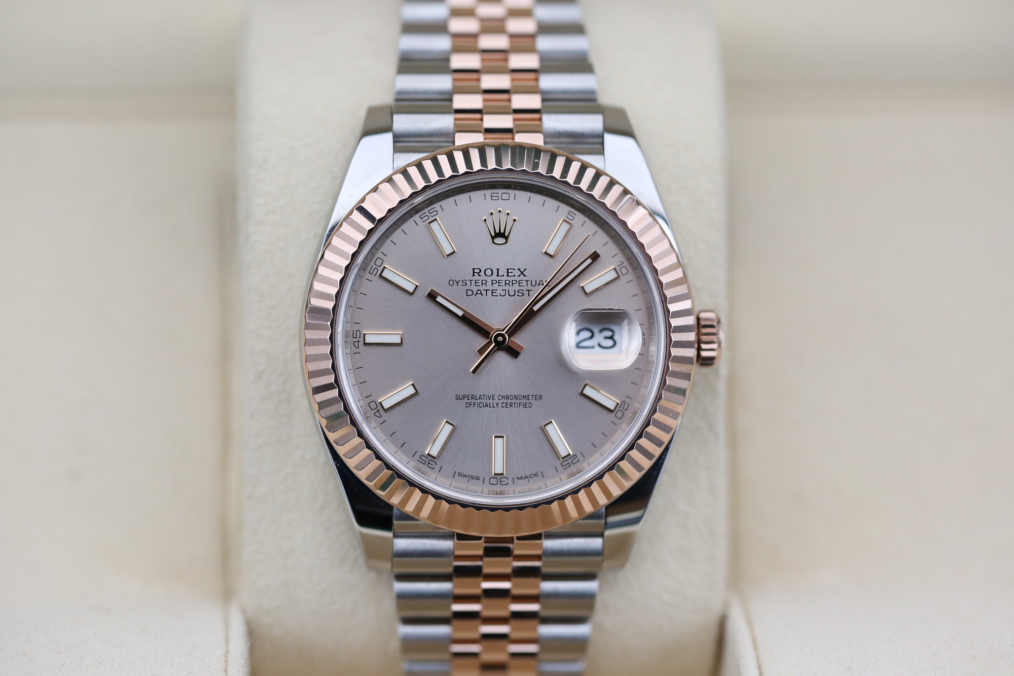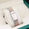 The watch is a beautiful combination of 18ct rose gold and oystersteel that features a stunning sundust dial with a sunray finish that is obtained using masterful brushing techniques to create a characteristic subtle glow that moves depending on the position of the wrist.