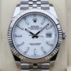 THIS WATCH IS A COMBINATION OF WHITE GOLD AND OYSTERSTEEL THAT FEATURES A SLEEK STYLISH BLACK DIAL, CONTRASTING WHITE INDEX HOUR MARKERS AND A WHITE GOLD FLUTED BEZEL.