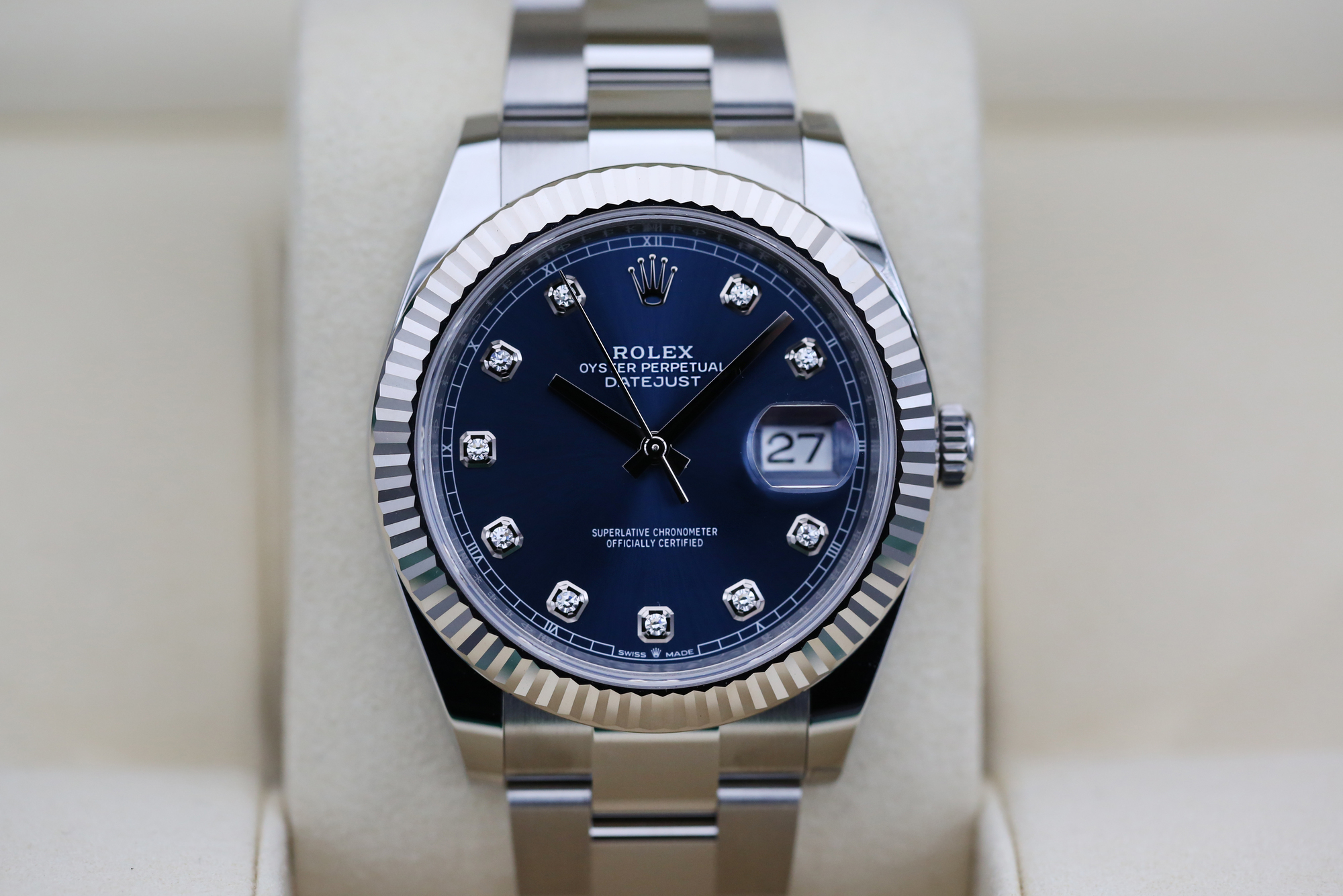 HERE WE HAVE THE ROLEX DATEJUST– BLUE DIAMOND