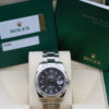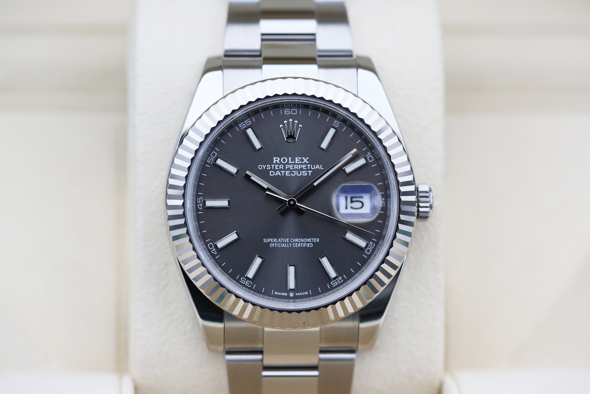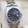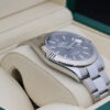 The watch is a combination of white gold and oystersteel that features a stylish rhodium dial, contrasting white index hour markers, date window at 3 o’clock and an 18ct white gold fluted bezel.