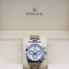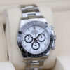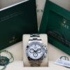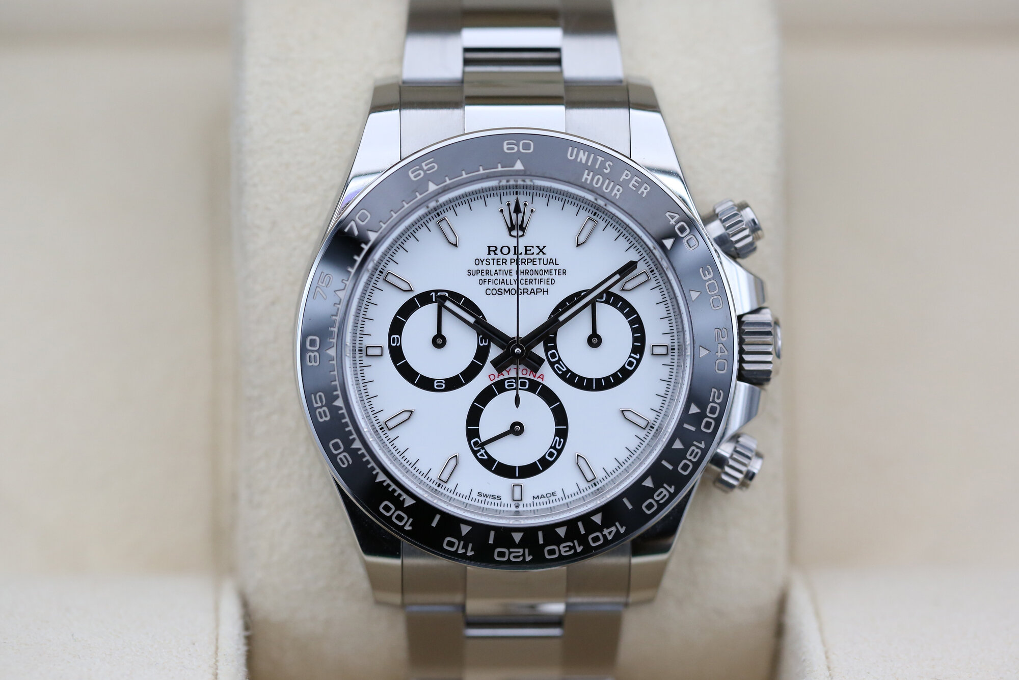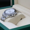 The watch boasts a stunning white dial, 18ct white gold detail on the hour markers and contrasting black trimmed sub-dials, this colour combination is affectionately known in the industry as “The Panda”.