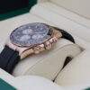 THE WATCH BOASTS AN 18CT ROSE GOLD CASE, A SLEEK STYLISH BLACK DIAL, 18CT ROSE GOLD DETAIL ON THE HOUR MARKERS AND 3 CONTRASTING SUNDUST SUB-DIALS.