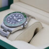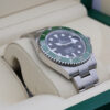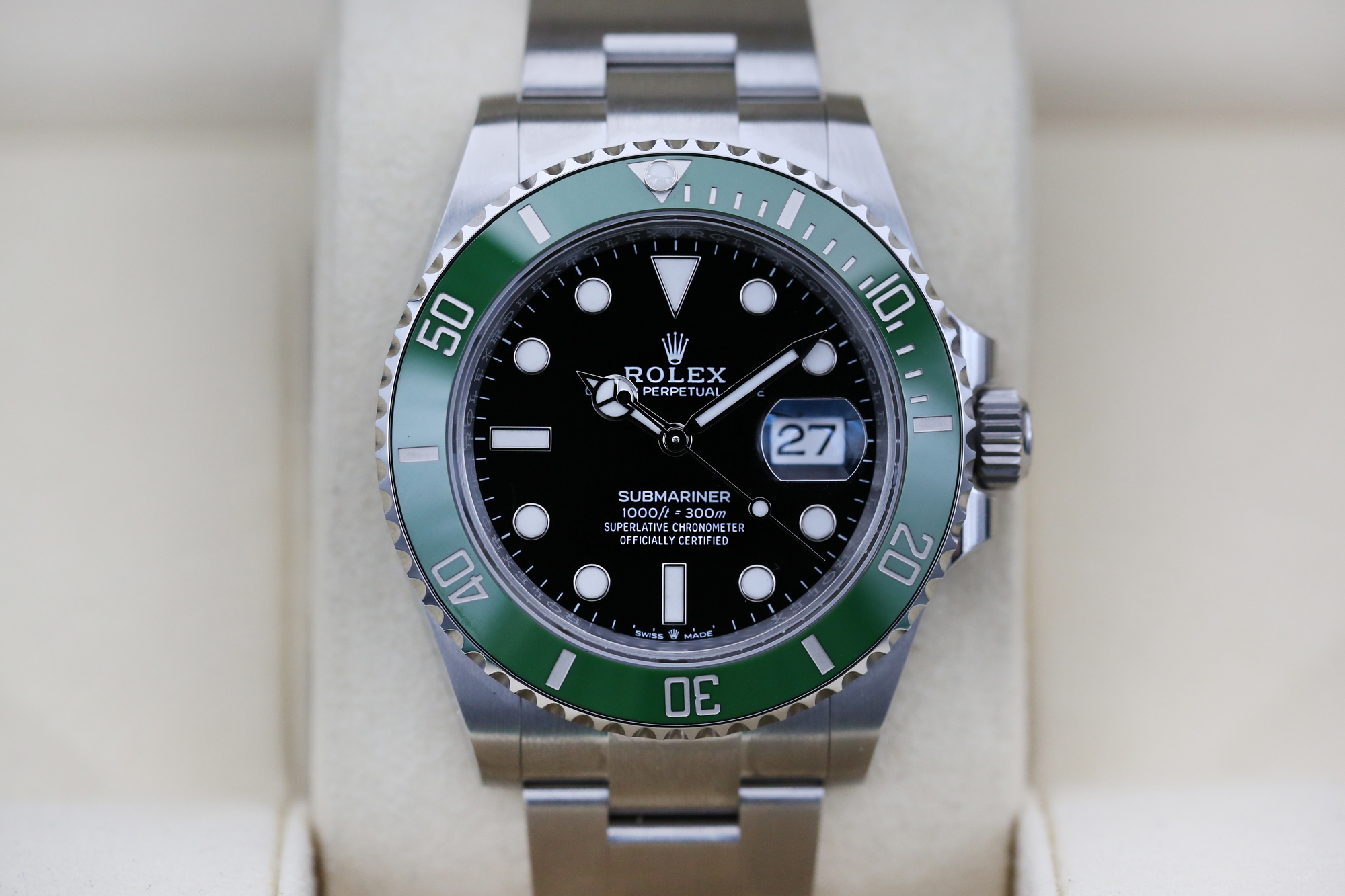 IT FEATURES A DATE WINDOW AT 3 O’CLOCK, A STYLISH BLACK DIAL AND A CERACHROM BEZEL WITH A GREEN CERAMIC INSERT, THIS COLOUR COMBINATION IS AFFECTIONATELY KNOWN IN THE INDUSTRY AS “THE STARBUCKS”.