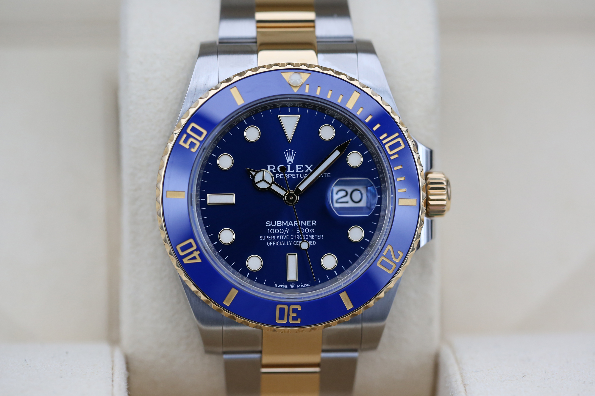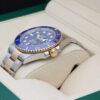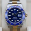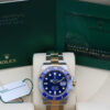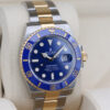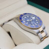 The watch is a combination of 18ct gold and oystersteel that has a stunning royal blue dial, date window at 3 o’clock and a cerachrom bezel with a blue ceramic insert this colour combination is affectionately known in the industry as “The Bluesy Sub”.