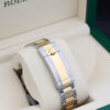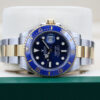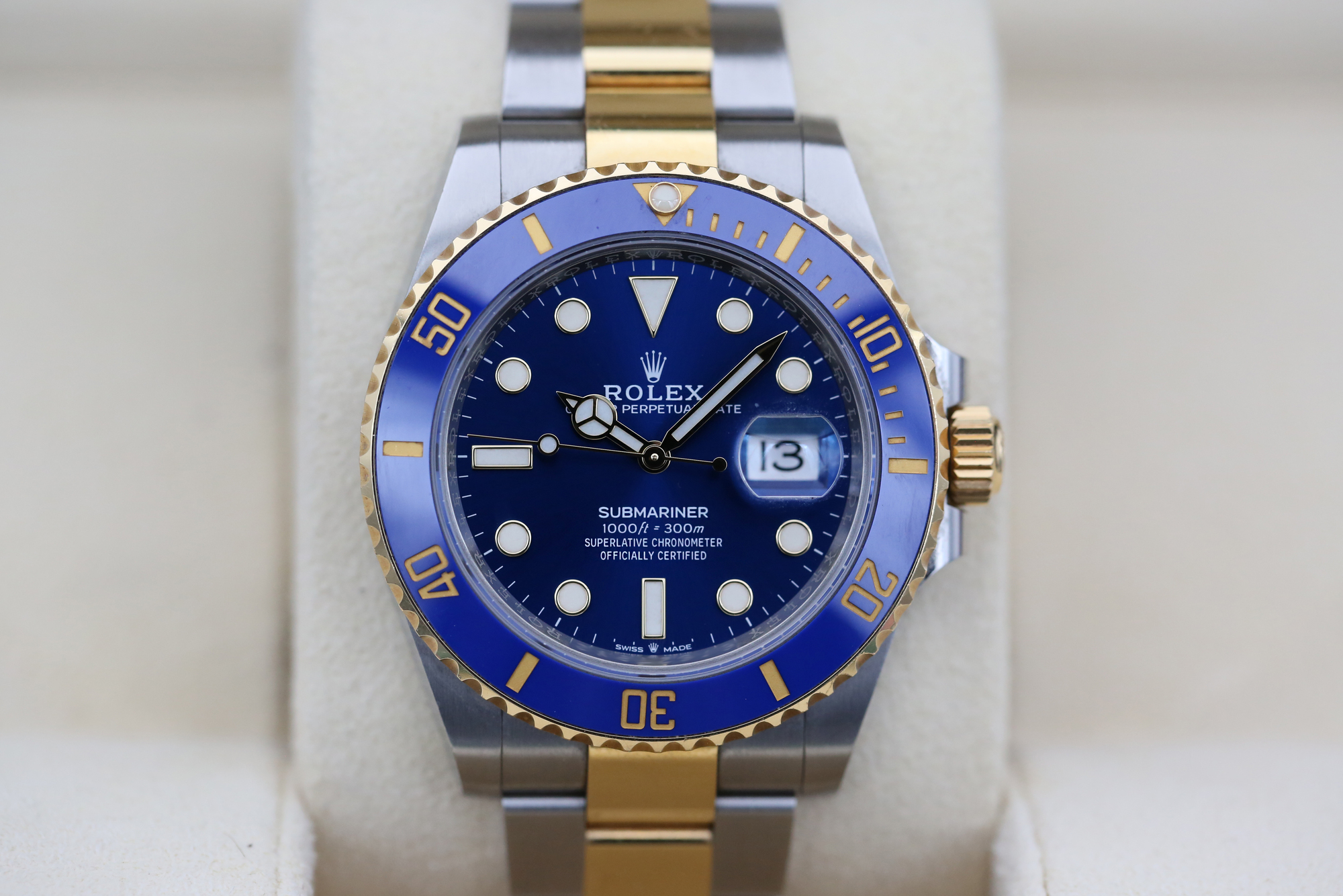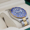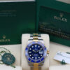 The watch is a combination of 18ct gold and oystersteel that has a stunning royal blue dial, date window at 3 o’clock and a cerachrom bezel with a blue ceramic insert this colour combination is affectionately known in the industry as “The Bluesy Sub”.