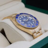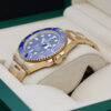 This beautiful watch is crafted entirely from 18ct gold and features a stunning royal blue dial, date window at 3 o’clock and a cerachrom bezel with a blue ceramic insert this colour combination is affectionately known in the industry as “The Bluesy Sub”.