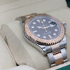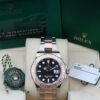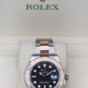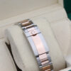 THE WATCH HAS A STYLISH BLACK DIAL AND IS A BEAUTIFUL COMBINATION OF 18CT ROSE GOLD AND OYSTERTSEEL.
