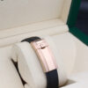 The watch boasts 18ct rose gold casing, a stunning black dial and a cerachrom bezel insert in high-tech ceramic.