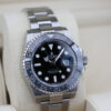 This watch features a stylish black dial and a cerachrom bezel with black and grey ceramic insert, this colour combination is affectionately known in the industry as “The Bruce Wayne”.