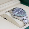 This watch features a black dial and a cerachrom bezel with black and green ceramic insert, this colour combination is affectionately known in the industry as “The Sprite”.