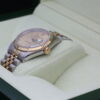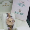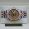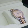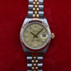 The watch is a beautiful combination of 18ct gold and oystersteel that features a stunning champagne dial, a date window at 3 o’clock, index hour markers and a 18ct gold fluted bezel.