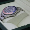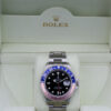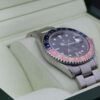This watch features a stylish black dial and an aluminium bezel with blue and red insert, this colour combination is affectionately known in the industry as “The Pepsi”.