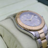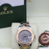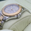 THE WATCH HAS A STYLISH RHODIUM DIAL AND IS A BEAUTIFUL COMBINATION OF 18CT GOLD AND OYSTERTSEEL.