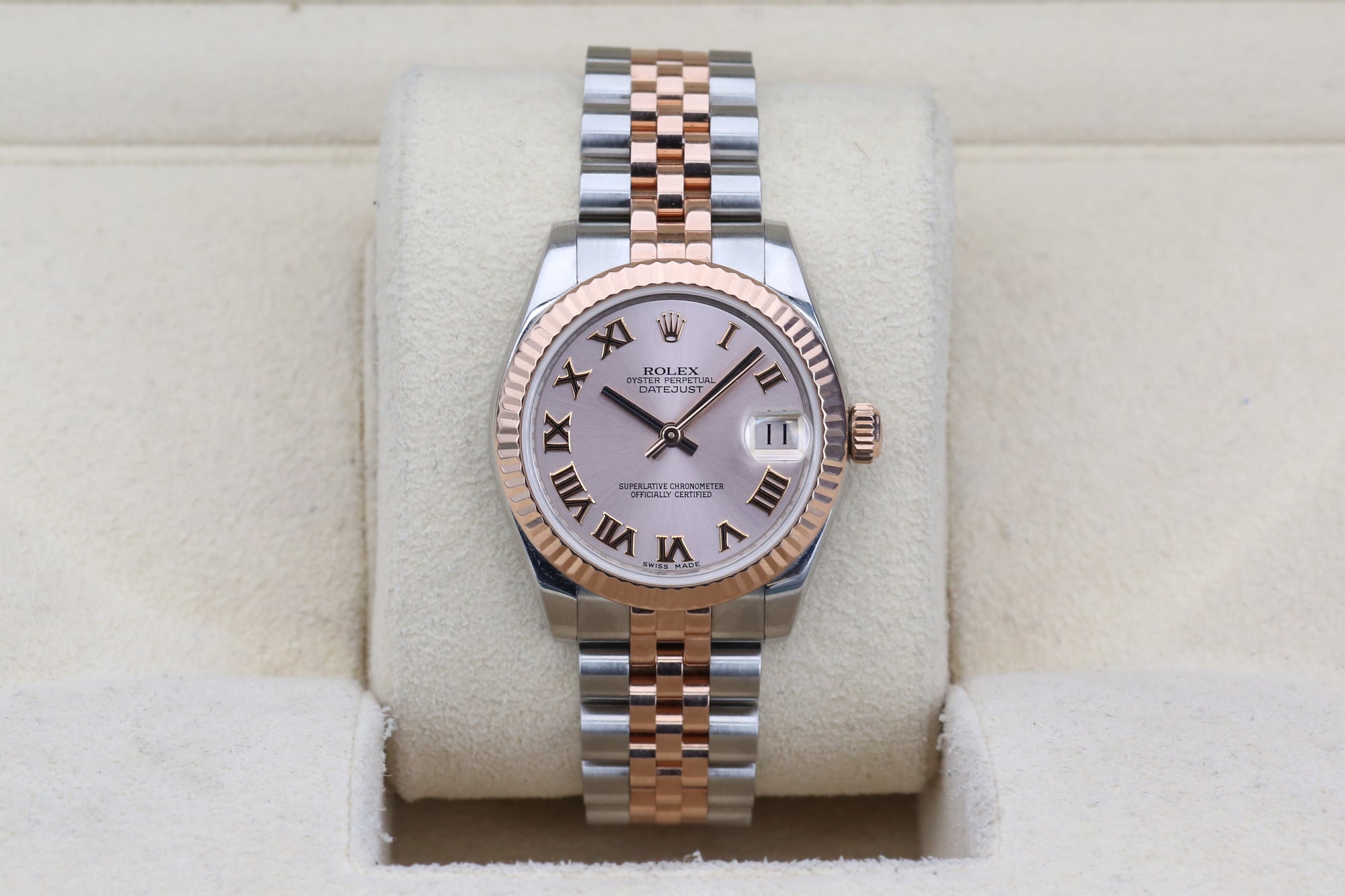 THIS IS A 31MM MODEL AND COMES ON THE FAMOUS JUBILEE BRACELET, THE WATCH IS A COMBINATION OF ROSE GOLD AND OYSTER STEEL THAT FEATURES A BEAUTIFUL PINK DIAL AND A ROSE GOLD FLUTED BEZEL.