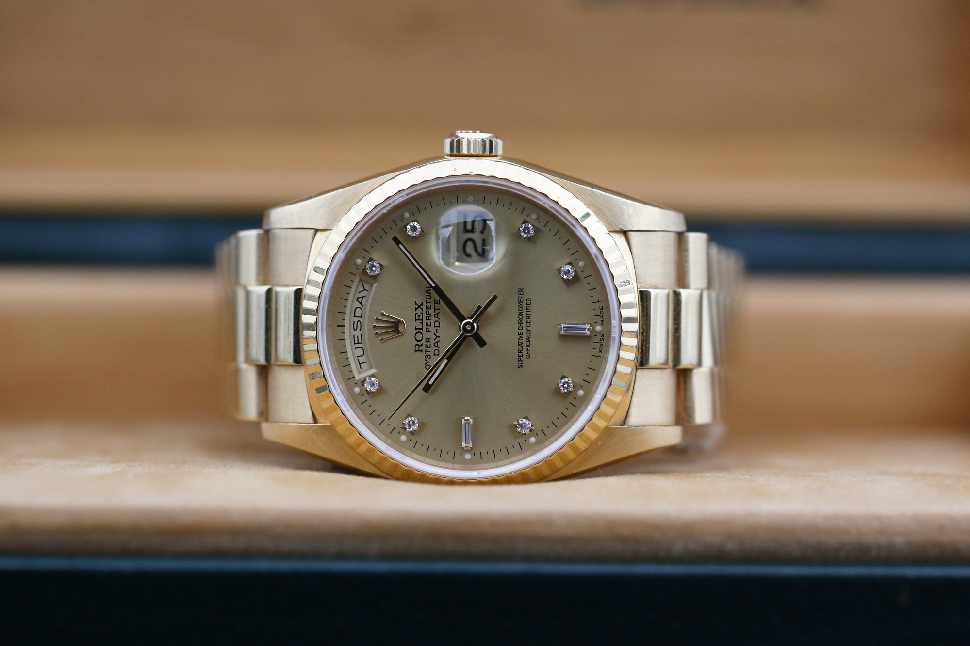 Here we have the Rolex Day-Date– Champagne Diamond