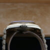 It boasts a beautiful champagne dial, diamond hour markers, day window at 12 0’clock, date window at 3 o’clock and has a fluted bezel.