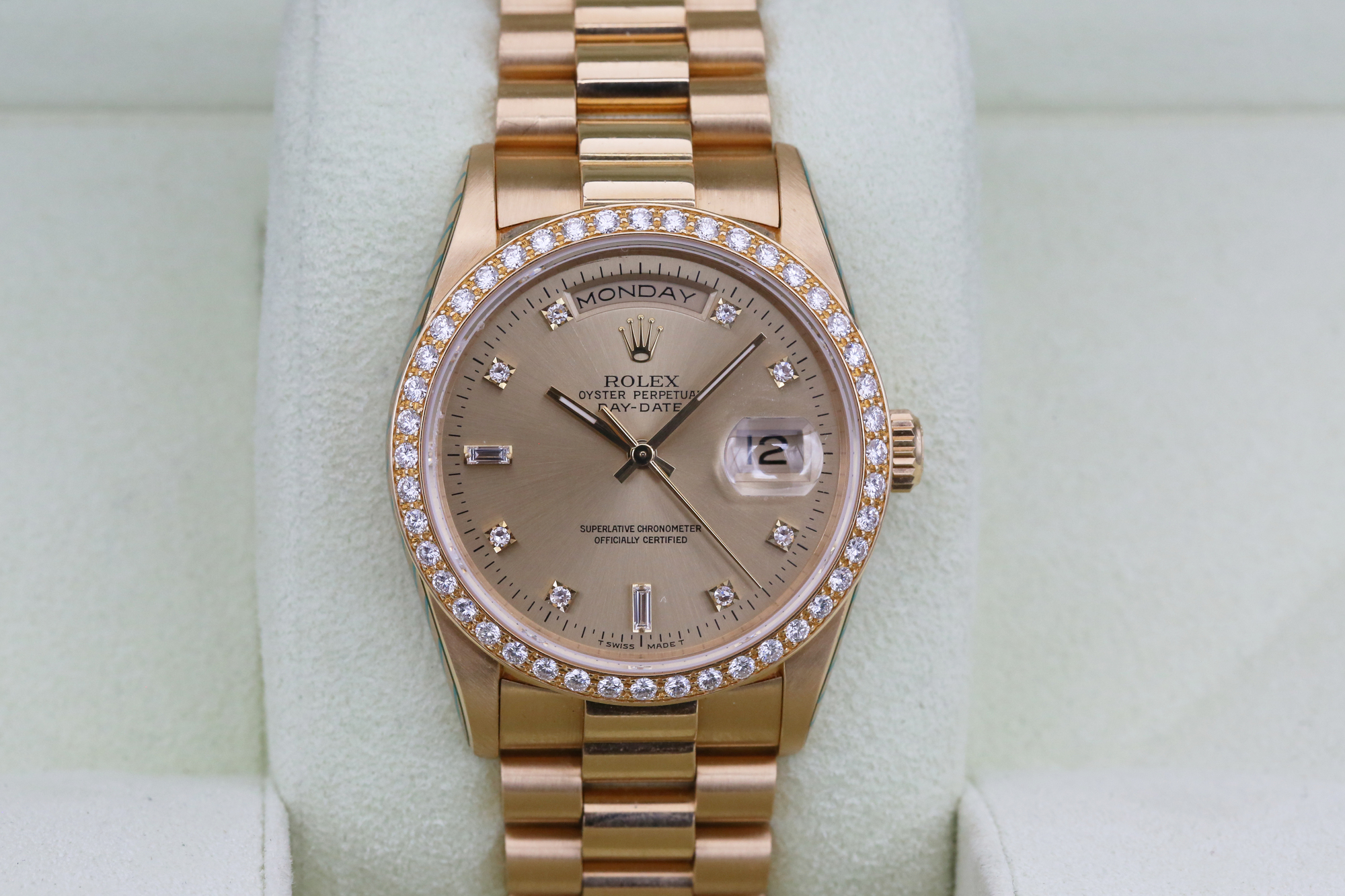 Here we have the Rolex Day-Date– Champagne Diamond