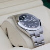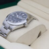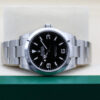 THIS WATCH FEATURES A STYLISH BLACK DIAL, NUMERALS AT 3,6 AND 9 AND A SMOOTH OYSTERSTEEL BEZEL.