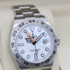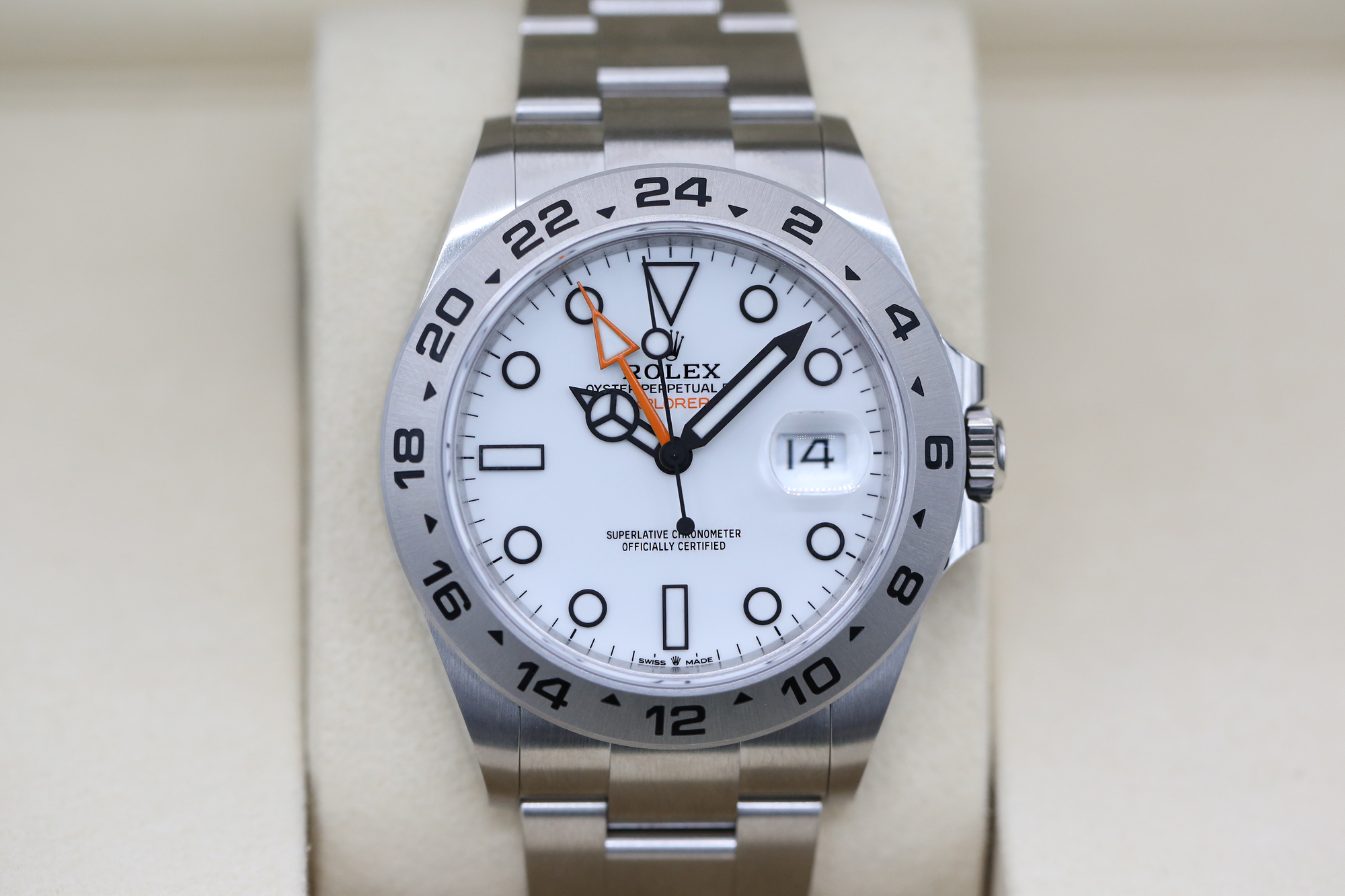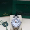 This is a 42mm model and comes on the famous oyster bracelet. This watch features a stunning white dial, a date window at 3 o’clock, fixed bezel with 24-hour graduations and a special orange 24 hour hand which enables day to be distinguished from night while exploring the world.