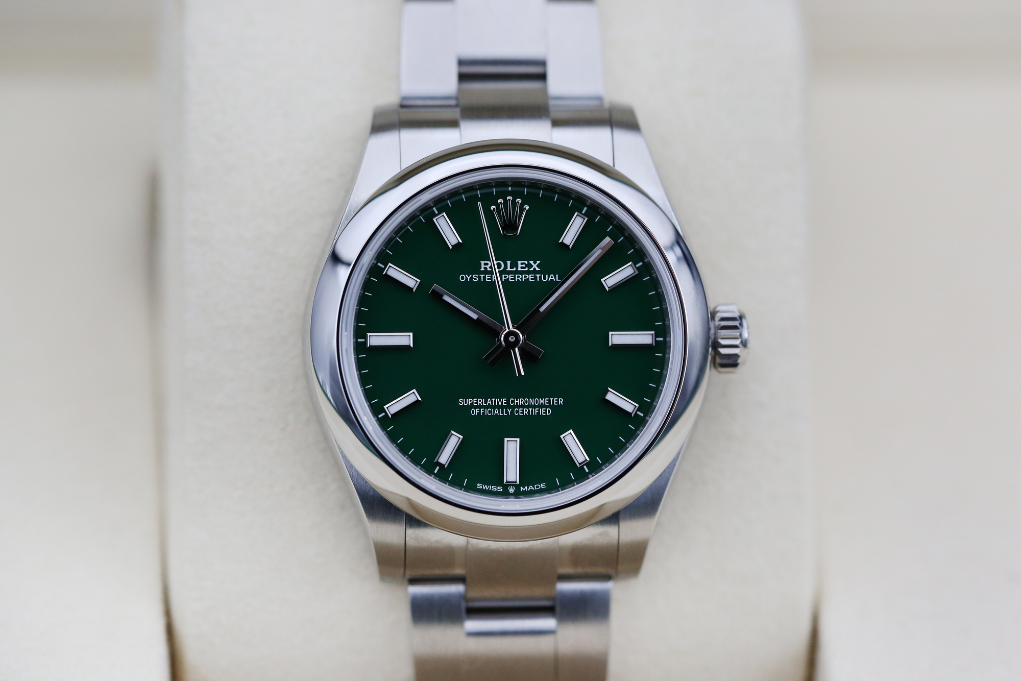 HERE WE HAVE THE ROLEX OYSTER PERPETUAL– GREEN