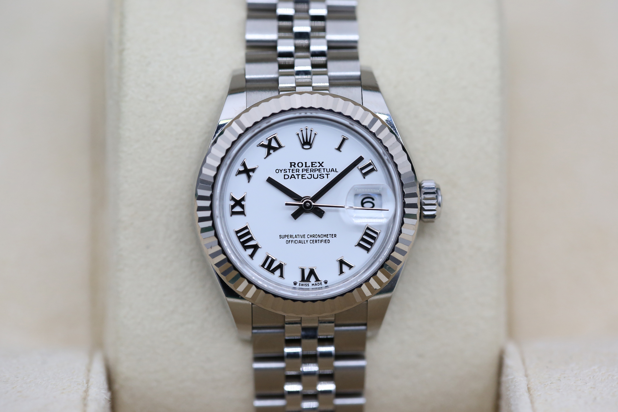 HERE WE HAVE THE ROLEX DATEJUST– WHITE ROMAN NUMERALS