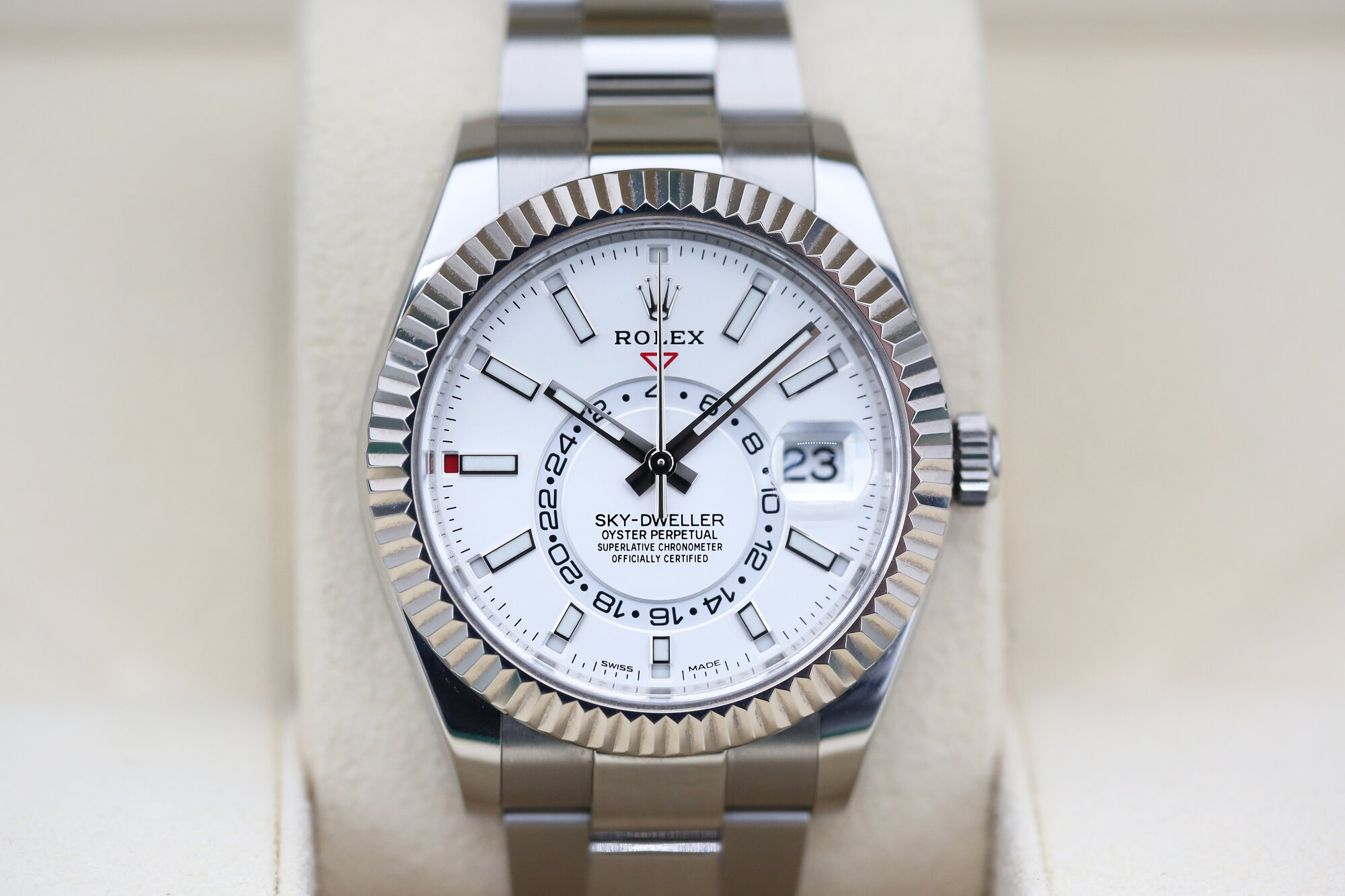 This is a 42mm model and comes on the famous oyster bracelet, it boasts a stunning white dial and a 18ct white gold fluted bezel.