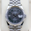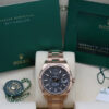 This is a 42mm model and comes on the famous oyster bracelet in 18ct rose gold. It boasts a stylish rhodium dial and a 18ct rose gold fluted bezel and case.