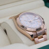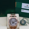 THIS IS A 42MM MODEL AND COMES ON THE FAMOUS OYSTER BRACELET IN 18CT ROSE GOLD. IT BOASTS A STUNNING SUNDUST DIAL AND AN 18CT ROSE GOLD FLUTED BEZEL AND CASE.