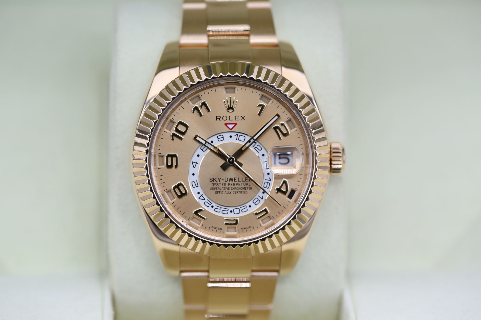 Here we have the Rolex Sky-Dweller– Champagne Arabic