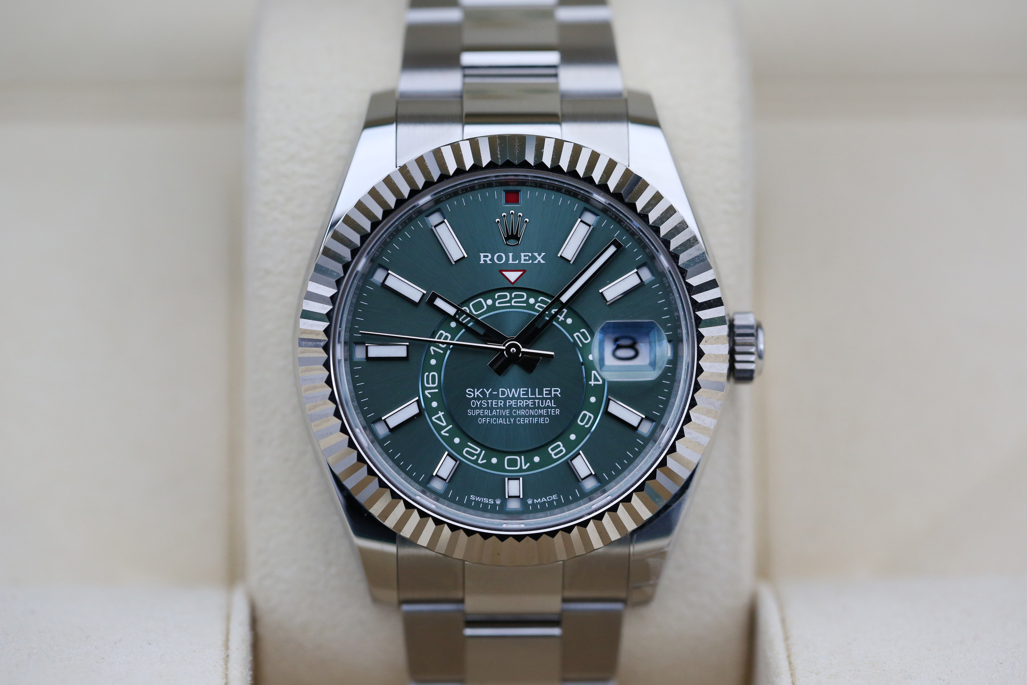 HERE WE HAVE THE ROLEX SKY-DWELLER– MINT GREEN