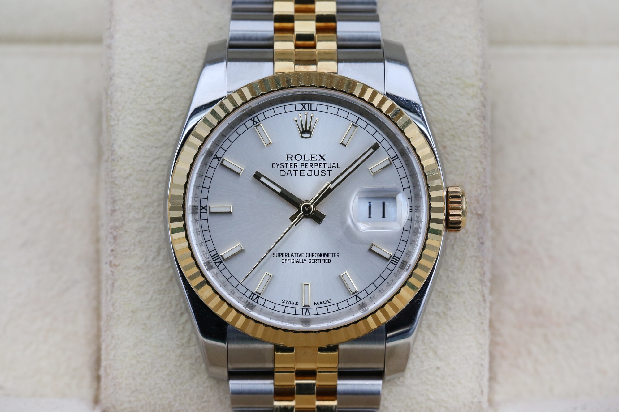 WELCOME TO KETTLE CLUB WATCHES, HERE WE HAVE THE ROLEX DATEJUST 36. THIS WATCH IS IN PRISTINE LIKE NEW CONDTION, MANUFACTORED IN 2013.